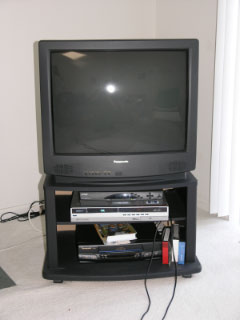 1 Panasonic TV 27in black CT-27G4A 9/1999, with black TV stand 60$
